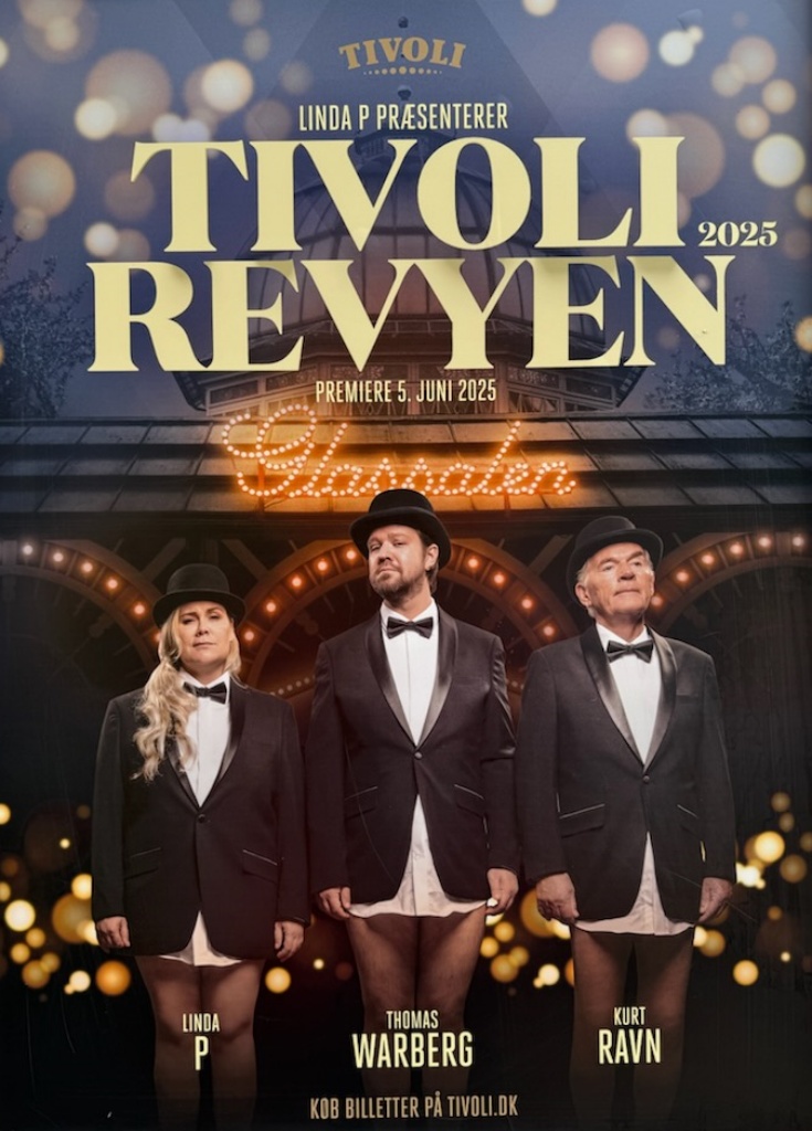 Tivoli har nemlig en lang tradition for revy. Tivoli skriver på deres hjemmeside ”Første gang Tivoli kunne præsentere revy var helt tilbage i 1884 under navnet Sommerrevyen, hvor Wilhelm Petersen med stor succes lancerede revy i Haven. Siden da har Tivoli opført mange succesfulde forestillinger i Glassalen og med navne som Carl Alstrup, Dirch Passer, Jørgen Ryg, Claus Ryskjær, Ulf Pilgaard, Lisbeth Dahl, Trine Dyrholm, Preben Christensen og Bodil Jørgensen og andre store skuespiller har sat deres humoristiske fingeraftryk på revyerne”. Så skal det blive spændende og ikke mindst interessant at se, om Linda P. sammen med holdet bag kan gøre dette års revy i Tivoli til en lige så stor succes som tidligere.