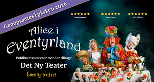 anmelderroste publikumsfavorit ALICE I EVENTYRLAND igen indtager de skrå brædder – denne gang på Det Ny Teater i København. Ovenpå den massive publikumssucces er det lykkes Eventyrteatret at indgå en aftale med Det Ny Teater om, at forestillingen skal spille på teatret i påskeferien.